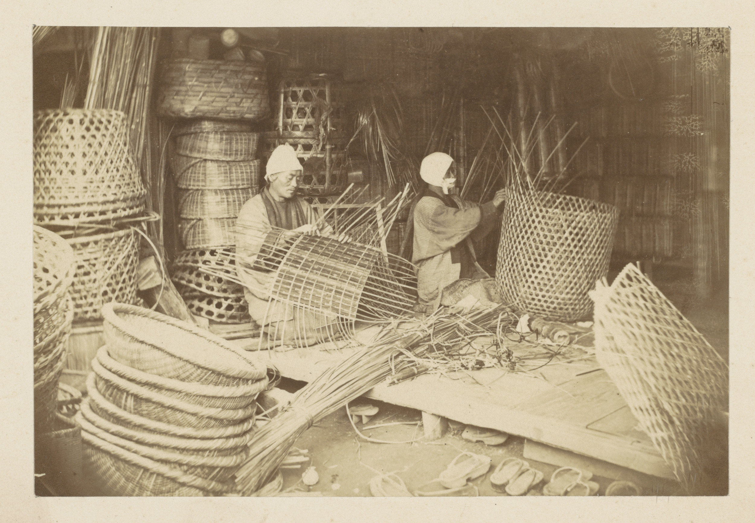 Twee onbekende Japanse vrouwen prepareren rijst voor...