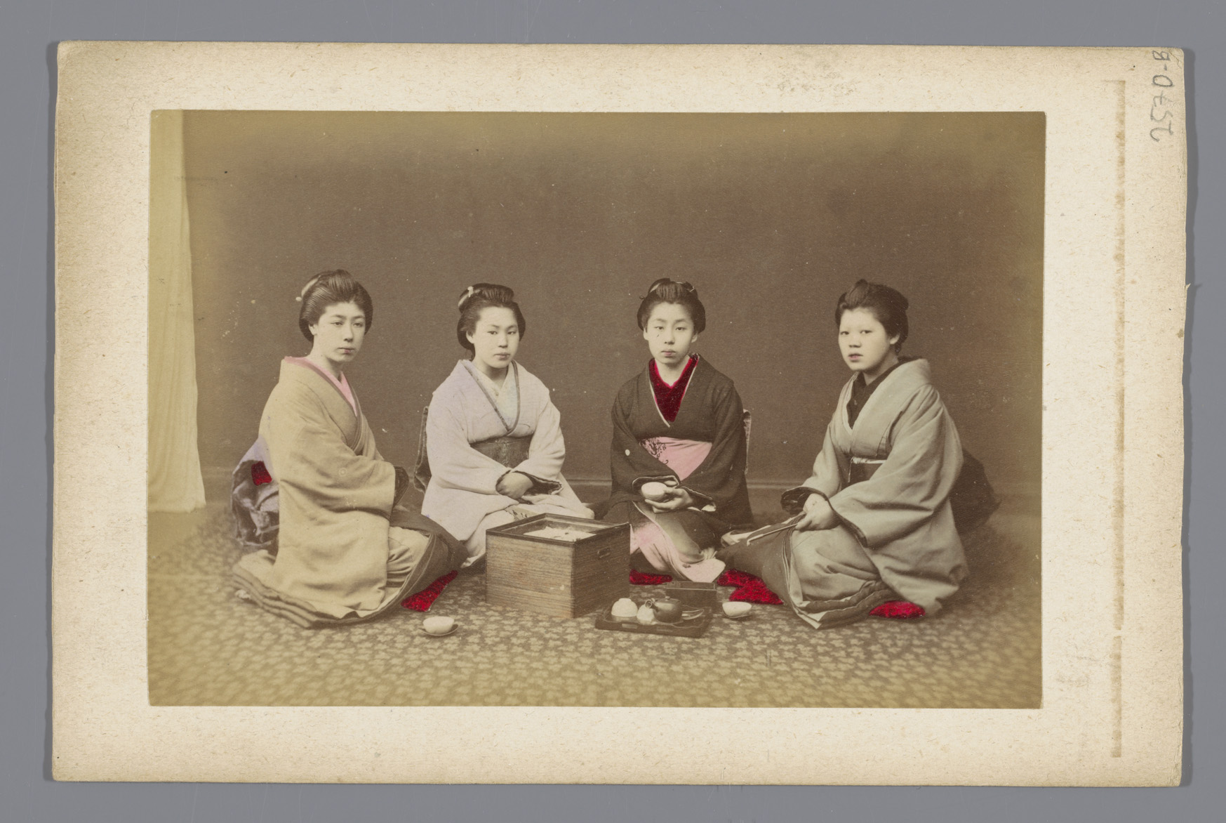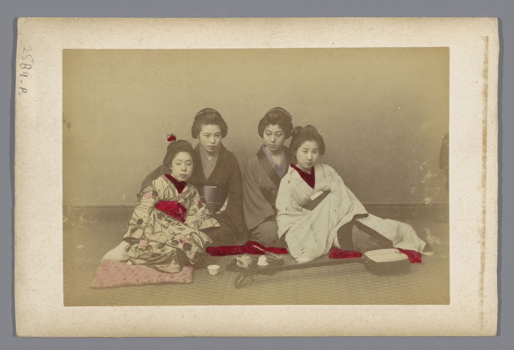 Groepsportret van vier onbekende Japanse vrouwen bij...