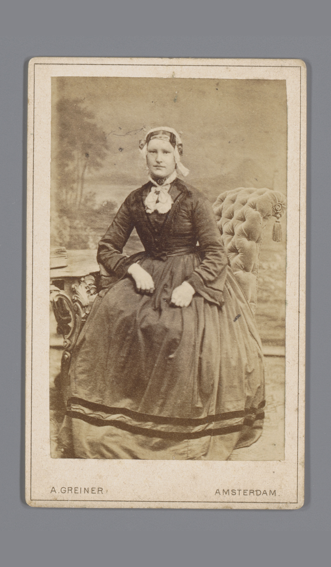 Portret van een onbekende vrouw met muts, zittend aa...