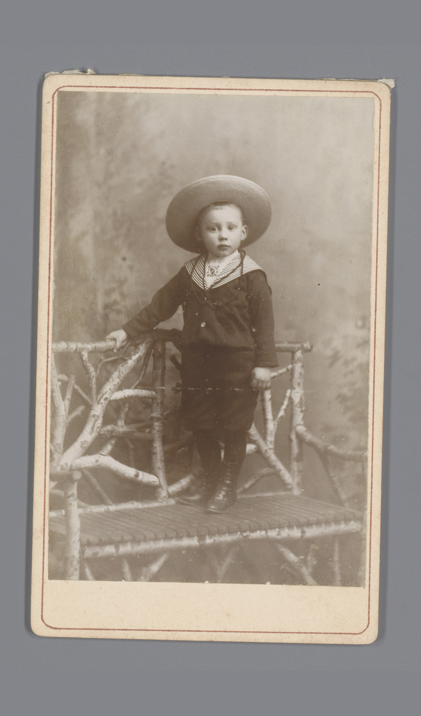 Portret van een onbekende jongen met een hoed, staan...