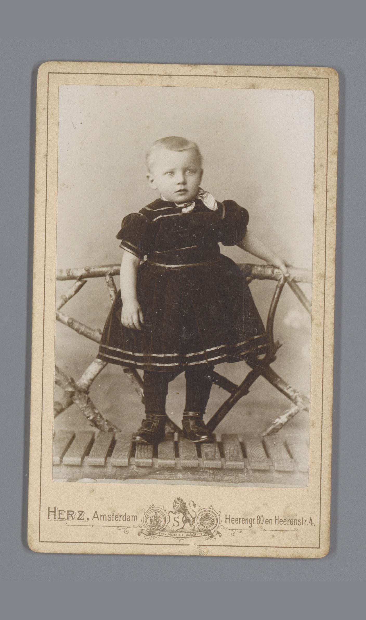 Portret van een onbekend kind, zittend op een tafel