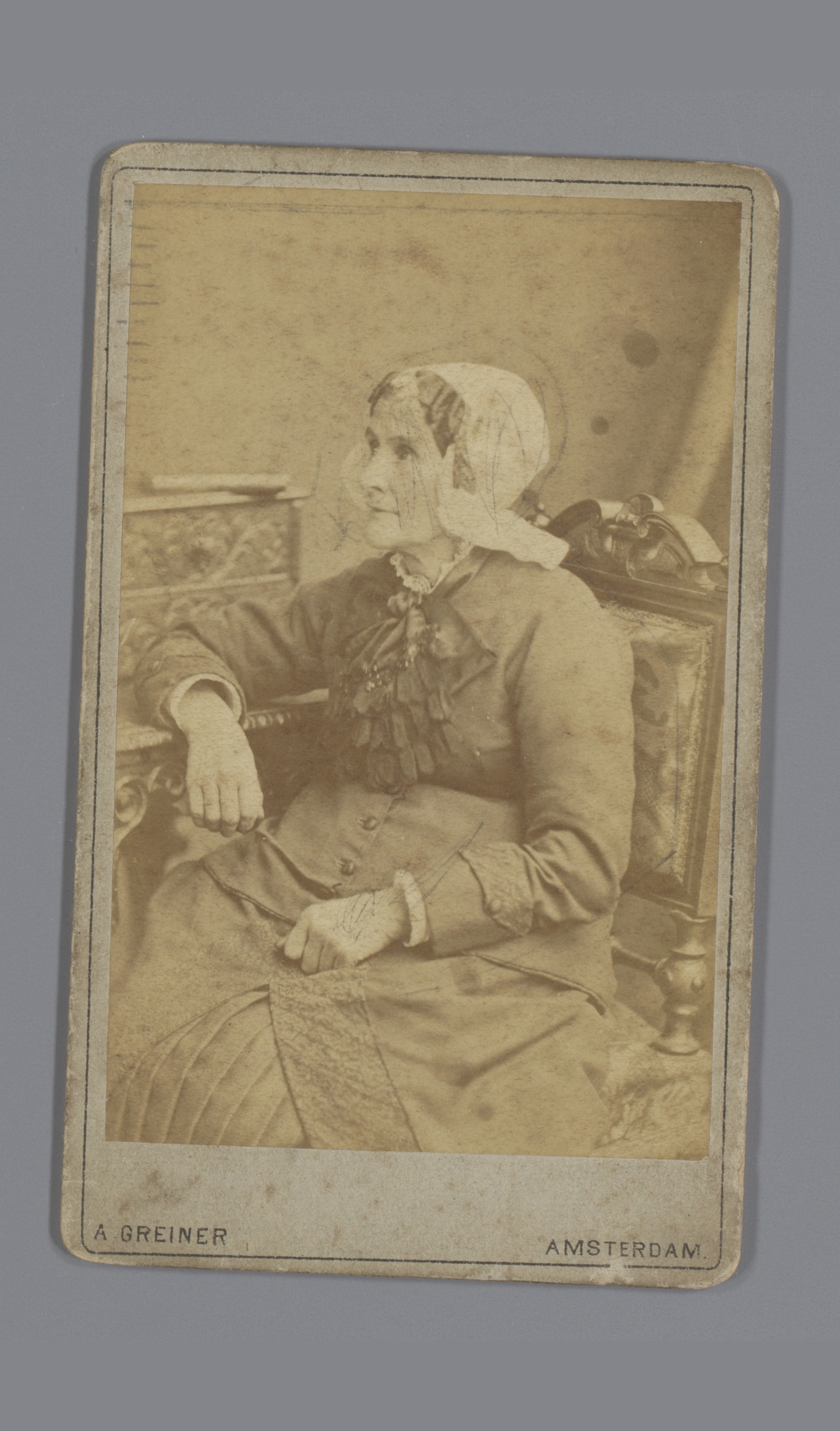 Portret van een onbekende zittende vrouw met een muts