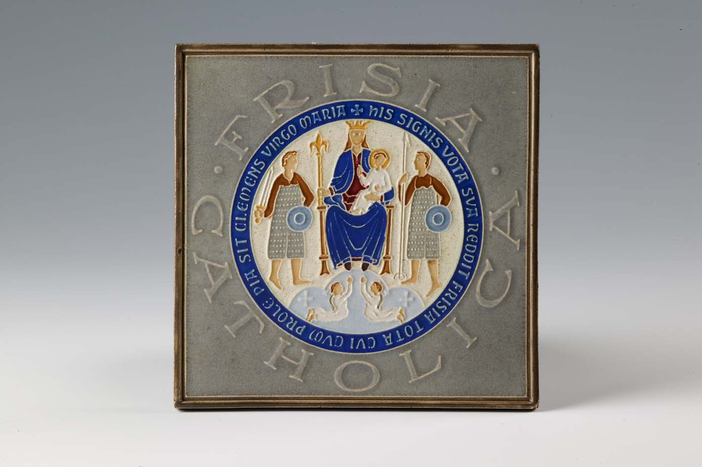 Cloisonné tegel met O.L. Vrouw van Zevenwouden en "F...