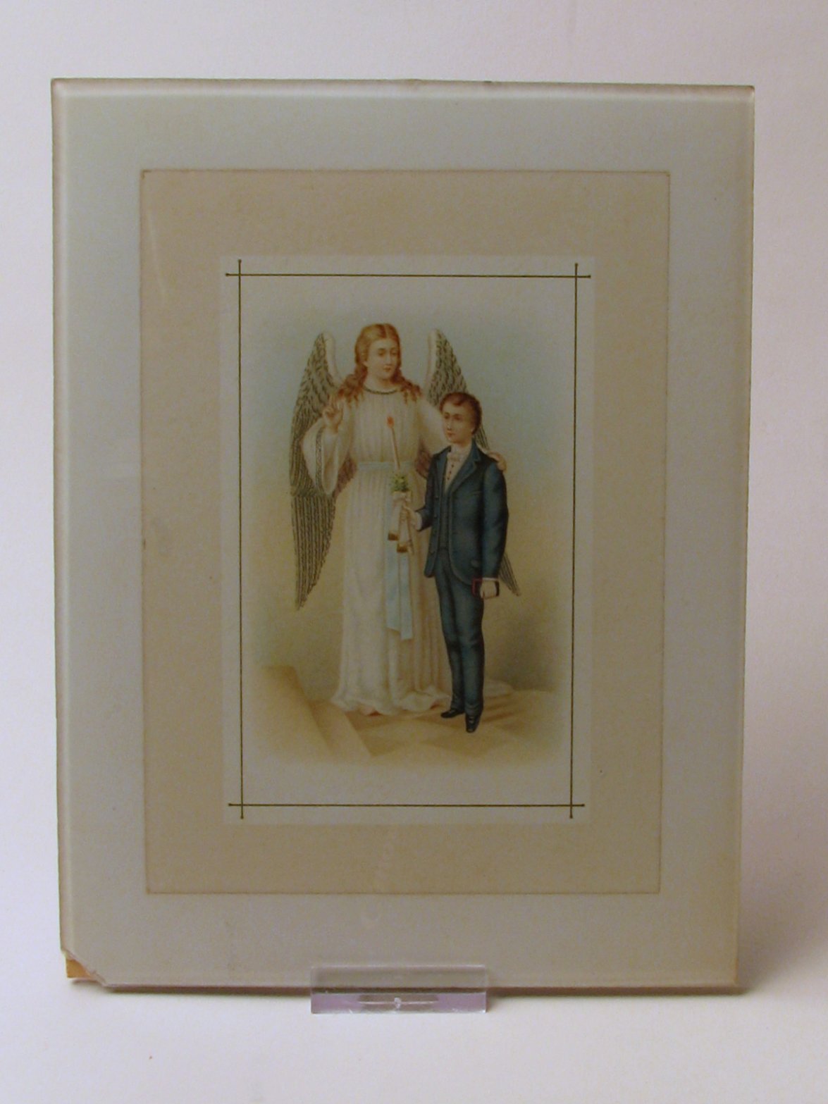 Prent met engel en jongen met brandende kaars