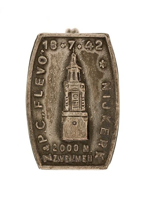Achthoekige prijspenning, 1e prijs gewonnen met zwem...