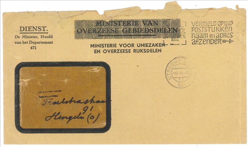 Enveloppe van het ministerie van Overzeese Gebiedsde...