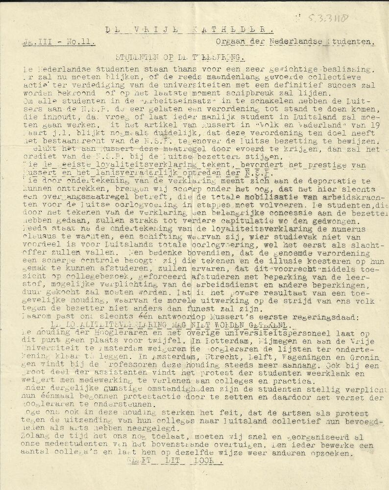 De Vrije Katheder ( Orgaan der Nederlandse studenten...