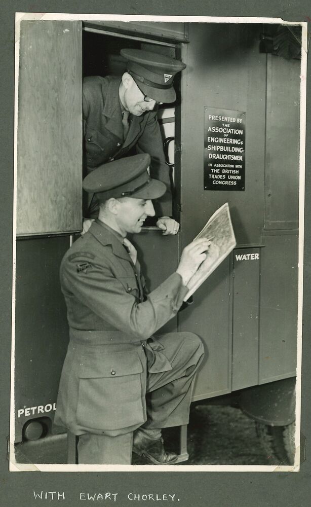 Foto van twee mannen in R.A.F. uniform, beiden in de...