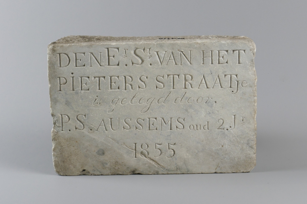 Gedenksteen van marmer uit het Hofje van het Pieters...