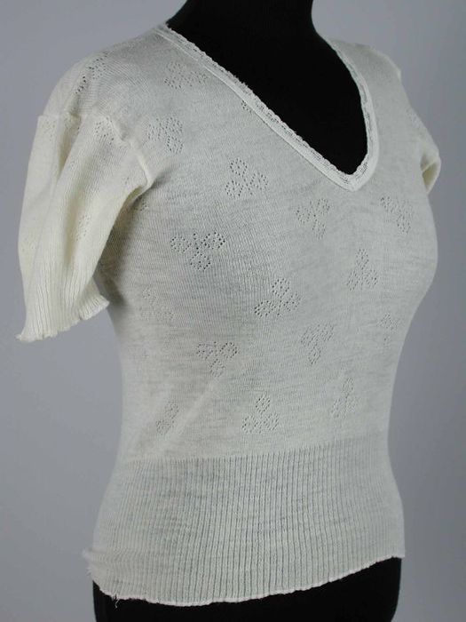Wit onderlijfje met Engels borduurwerk, boothals, kn...