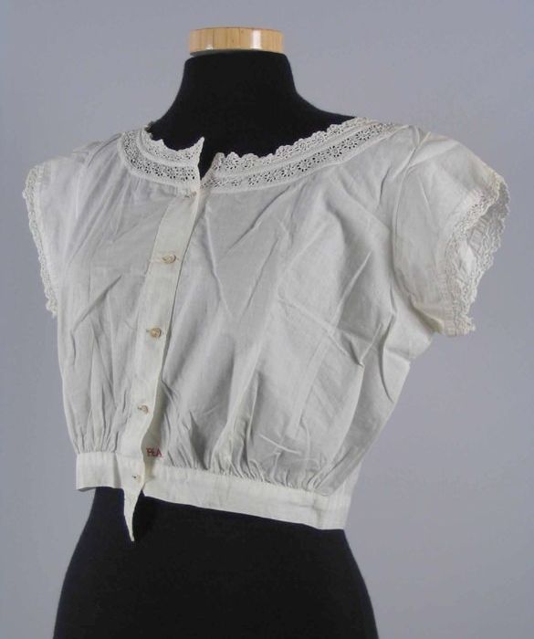 Chemisette of combinaison van wit katoen, randen en ...