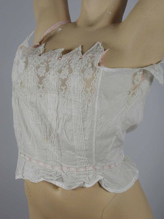 Wit batisten onderlijfje, bovenrand brede strook kan...