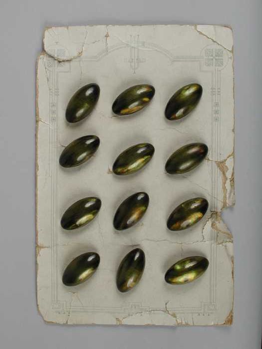 Knopenkaart met twaalf knopen, groen parelmoer, ovaa...