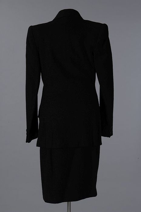 Zwart wollen mantelpak, rok met jasje