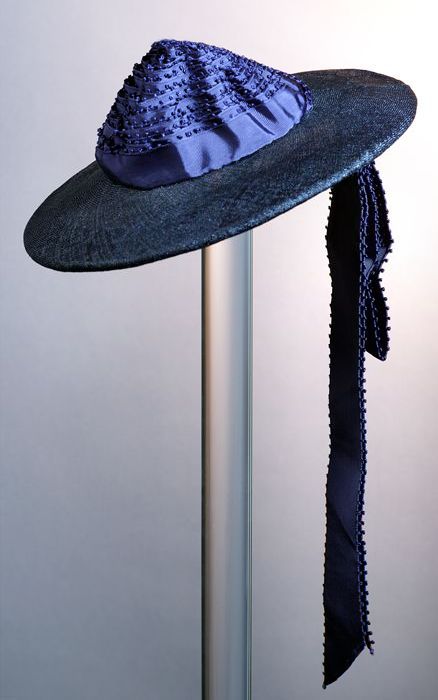 Donkerblauwe damesshoed van gladstro en satijnen rip...
