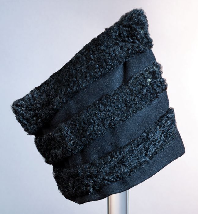 Zwart vilten silhouethoed, met drie randen astrakan