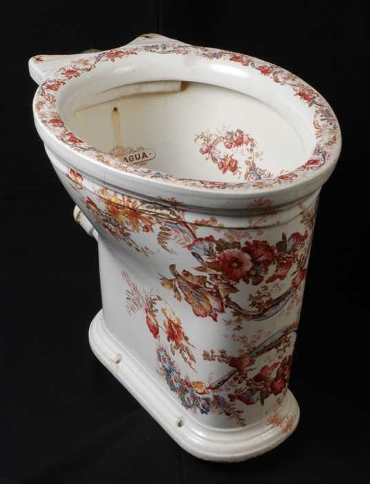 Witte toiletpot met meerkleurige bloemen