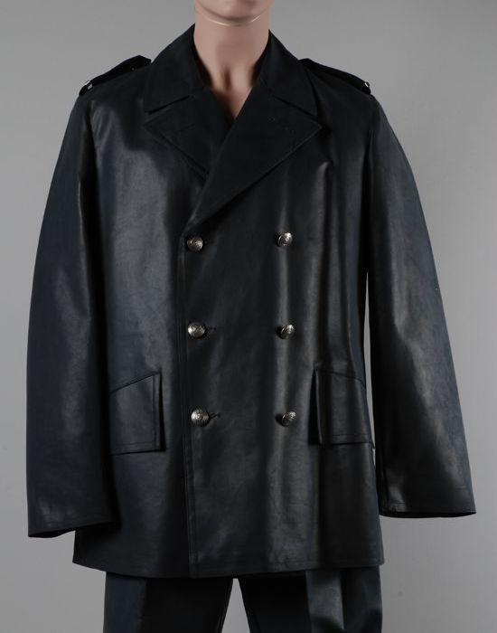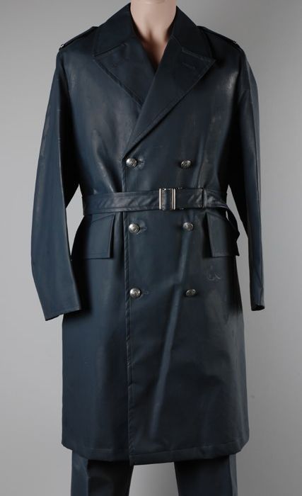 Uniformjas, lange regenjas met ceintuur, van donkerb...