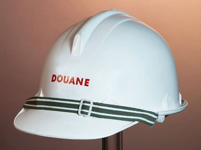 Witte kunststof helm van uniform Nederlandse douane