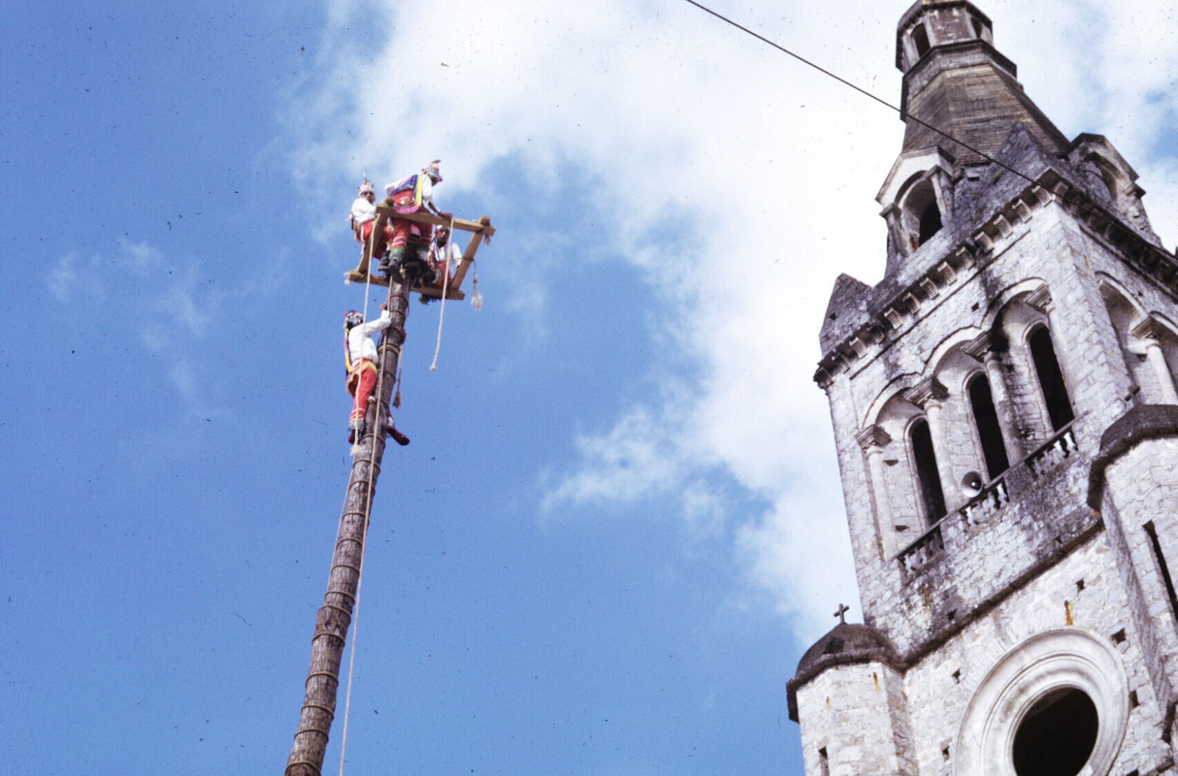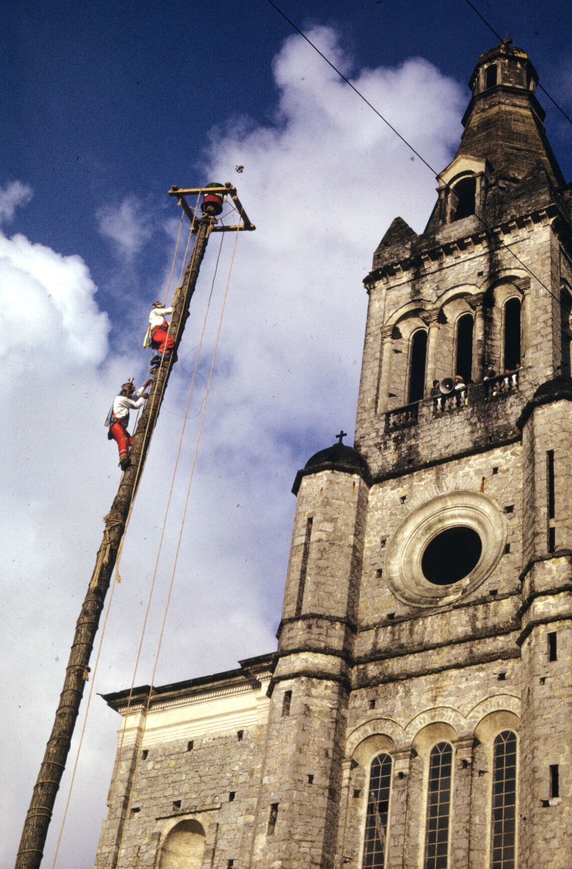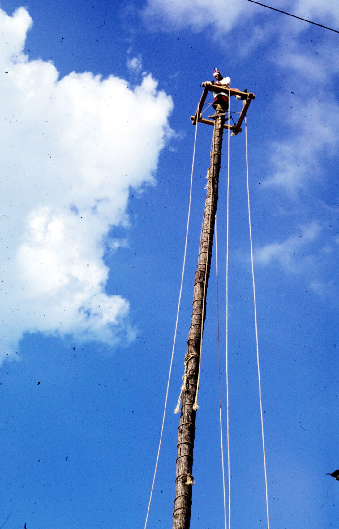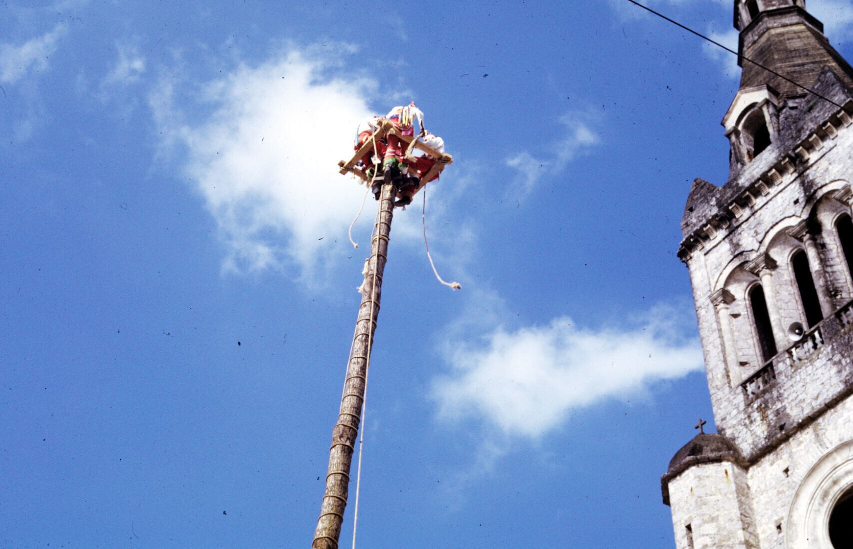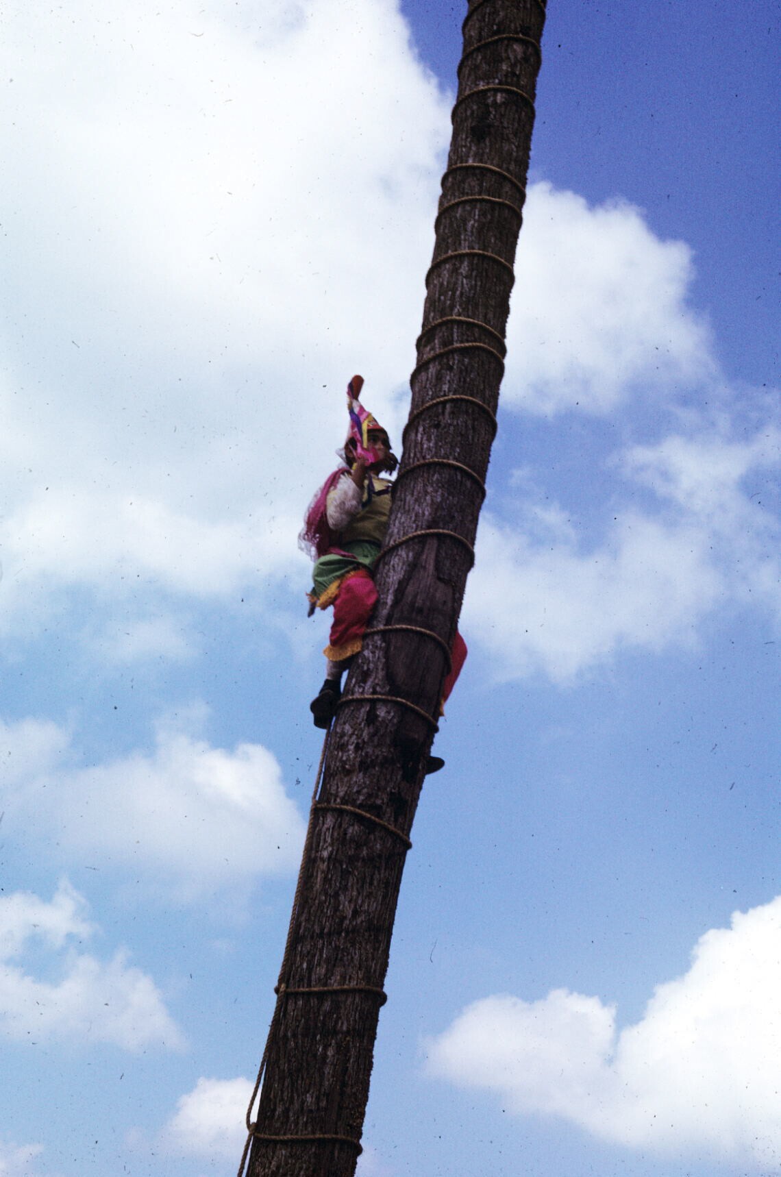 een van de voladores, 'palo volador' beklimmend