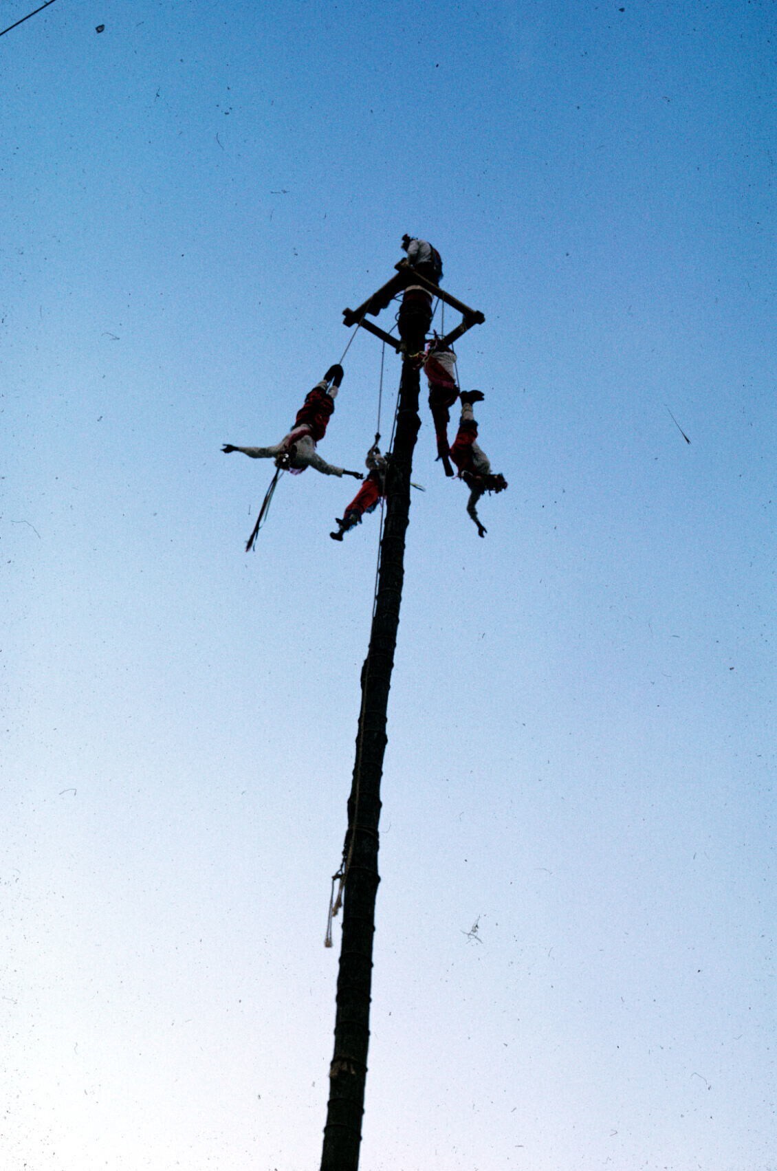 een van de voladores nadert top van 'palo volador'