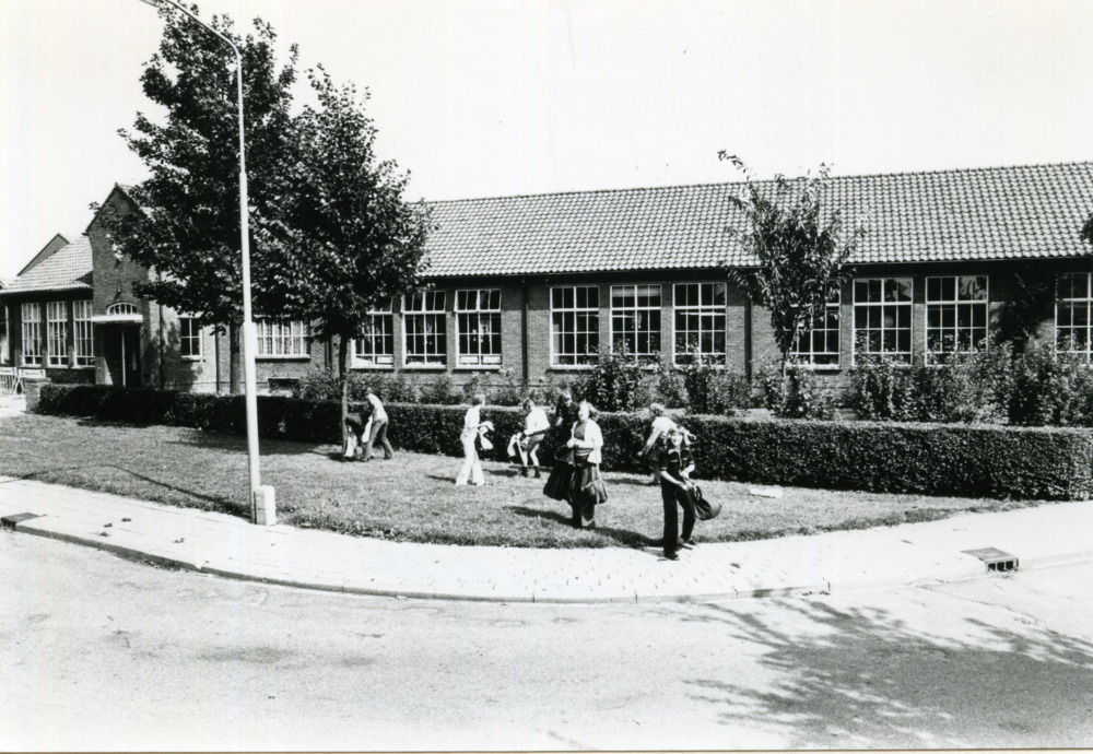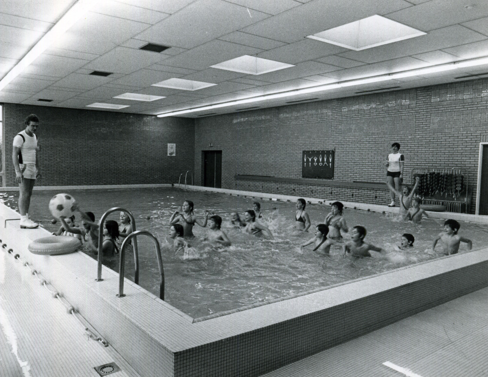 Zwart-wit foto van zwemles in het zwembad De Boskuul...