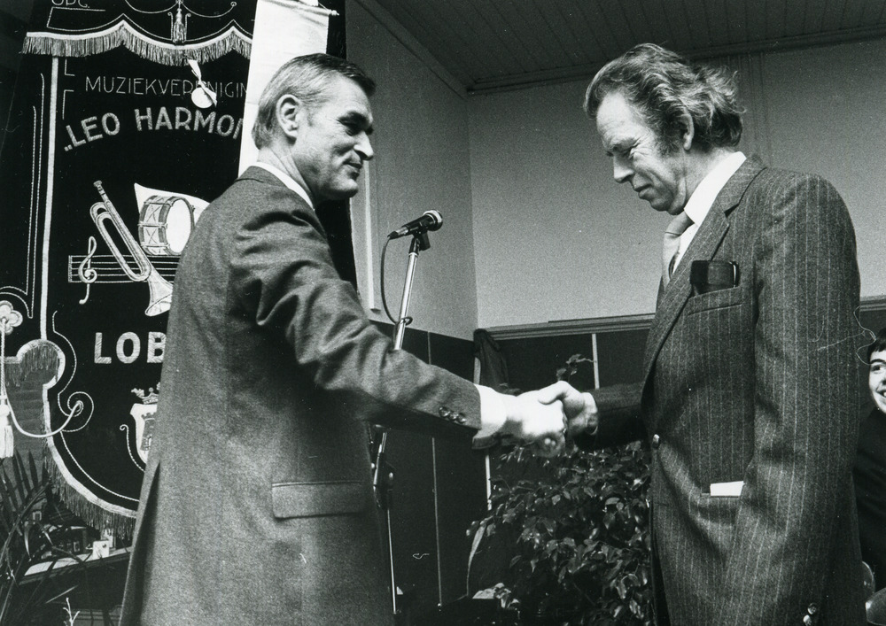 Zwart-wit foto van burgemeester H.G.A.M. Habes die h...