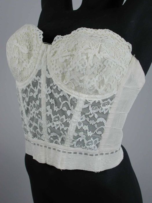 Wit kanten bustier met schouderbanden en baleinen, e...