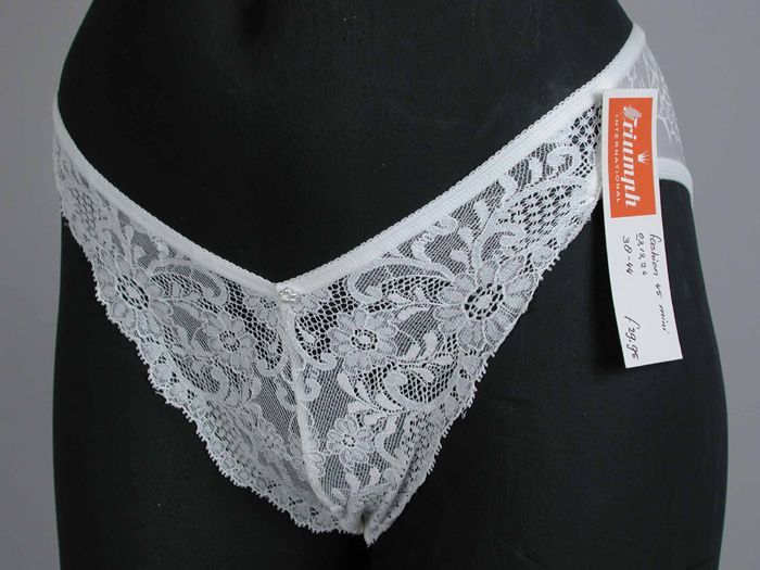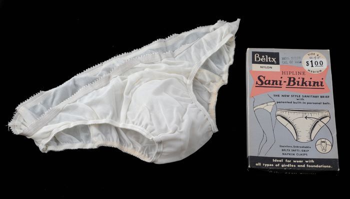 Witte nylon damesslip, "Sani-Bikini"