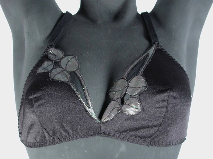 Zwarte bustier, 'klapbeha', gladde stof, randje kant...