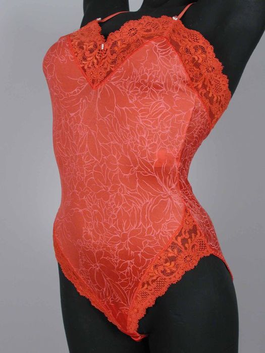 Blauwe bodystocking, bloempatroon, afgebiesd met kan...