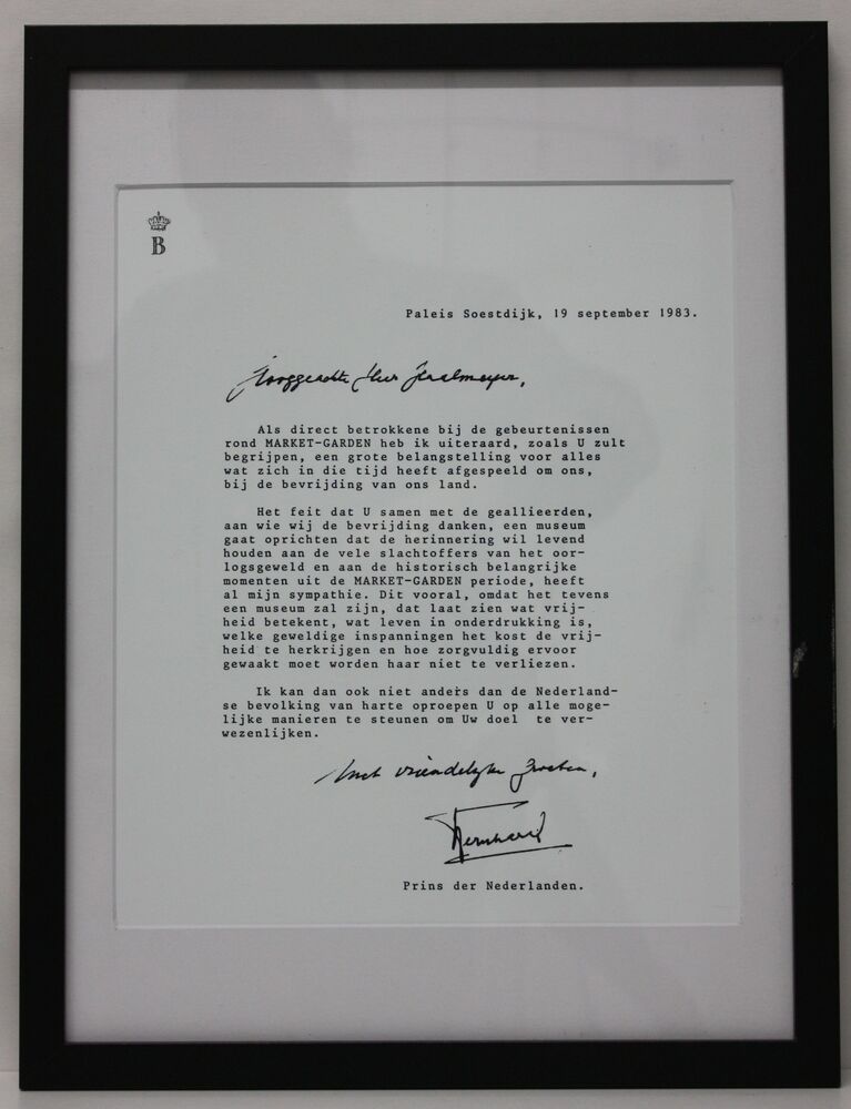 Brief van Z.K.H. Prins Bernhard Prins der Nederlanden