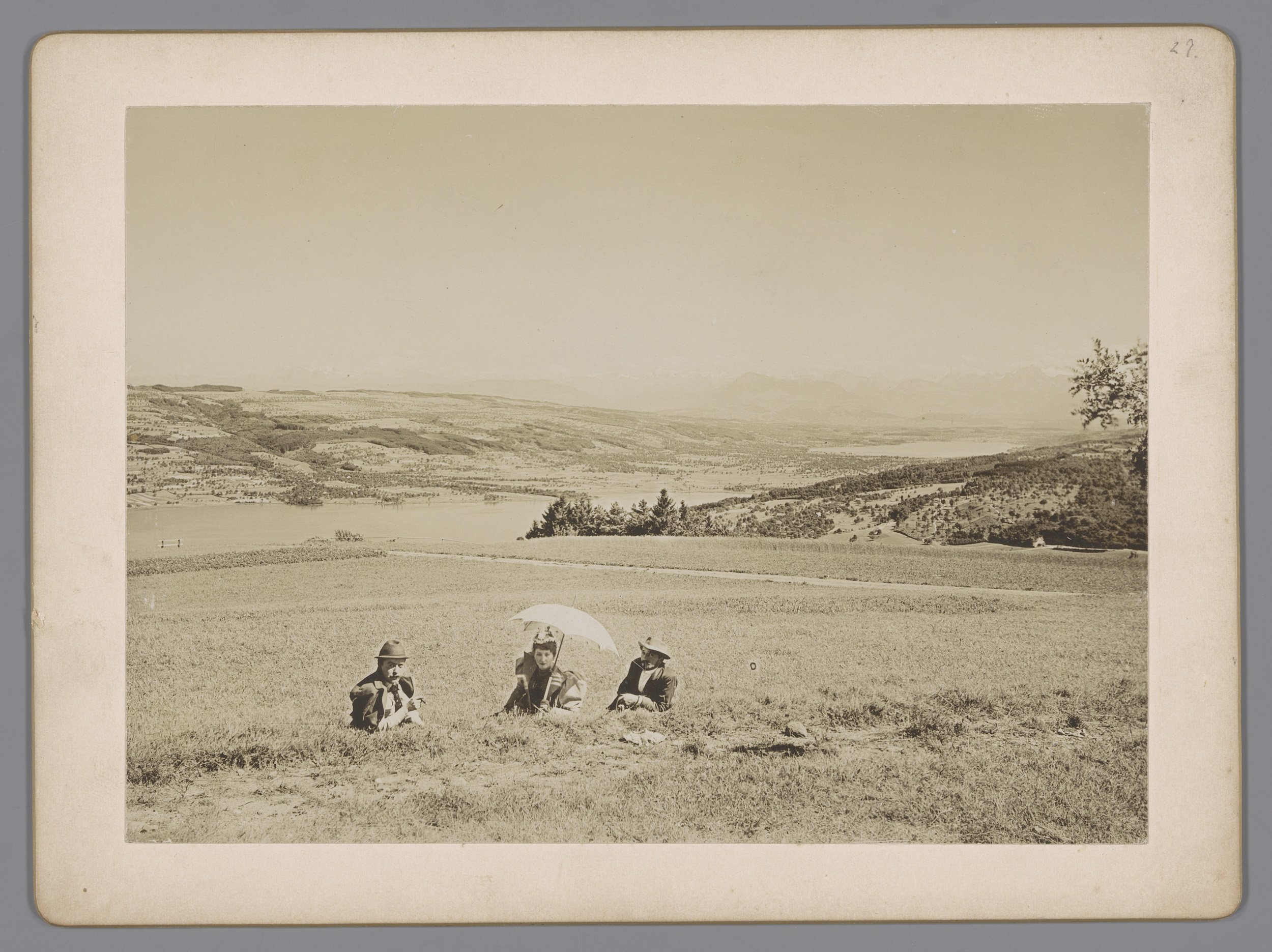 Drie mensen, aangeduid als Maler Schirmer en Pechzie...