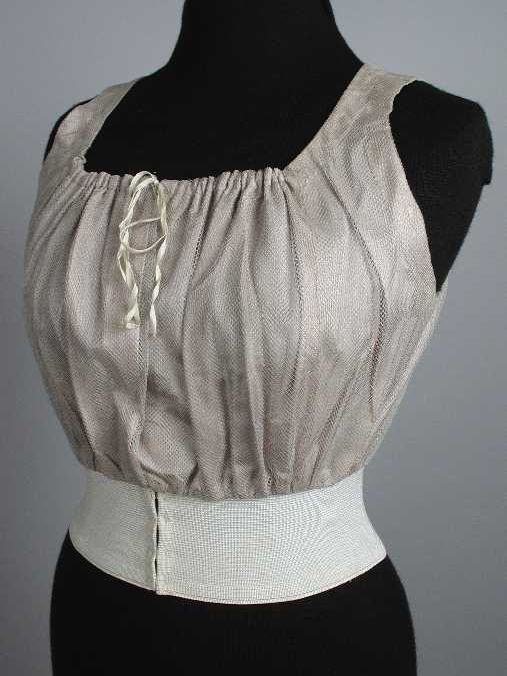 Muisgrijs japonlijfje, tailleband van breed elastiek...