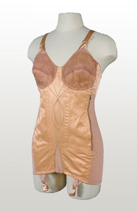 Halve zachtroze step-in of korset met ingeweven fant...
