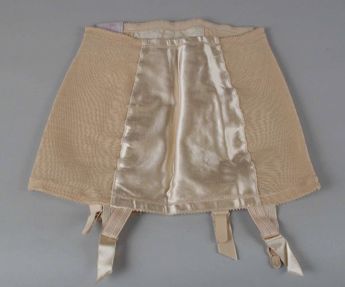 Jarretelgordel van zacht blauwgroen satijn, zijkante...