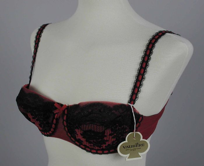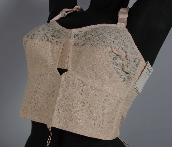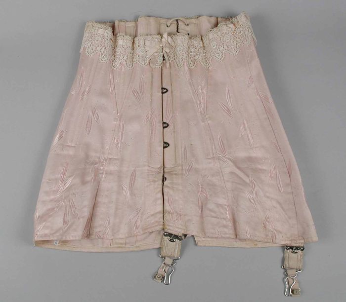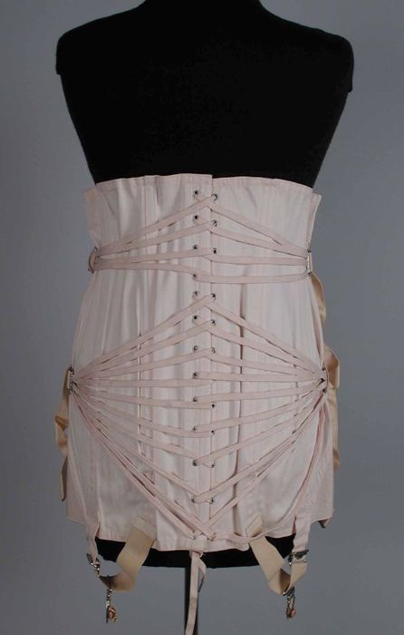 Korset, kant met roze satijnen lint, achter veterslu...