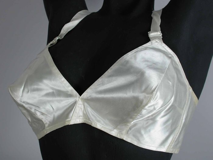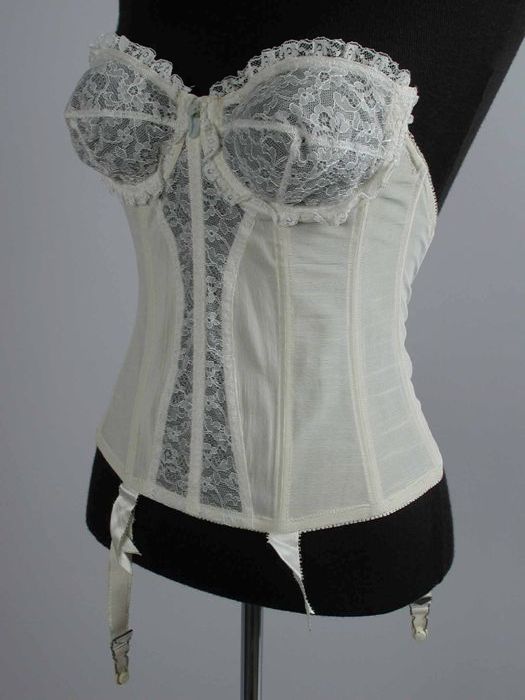 Wit satijnen corselet, met baleinen, bovenhelft cups...