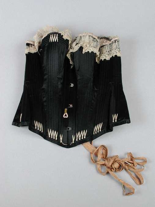 Korset, langs bovenrand broderiekant, vetersluiting ...