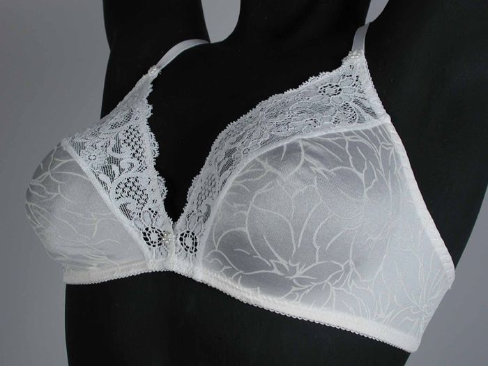 Witte nylon bustehouder, kant met cirkelmotief, voor...