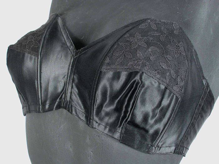 Zwart satijnen gebaleineerd korset met strook kant m...