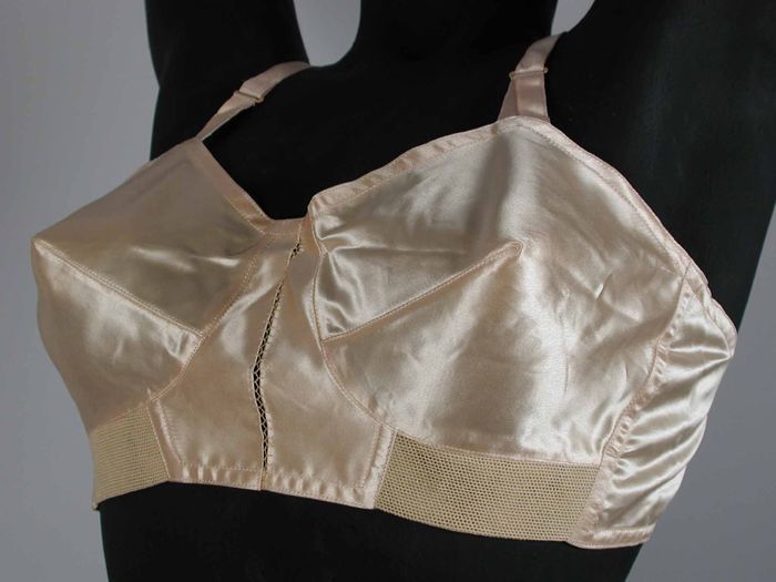 Zalmroze katoenen keurslijfje, verstevigd met balein...