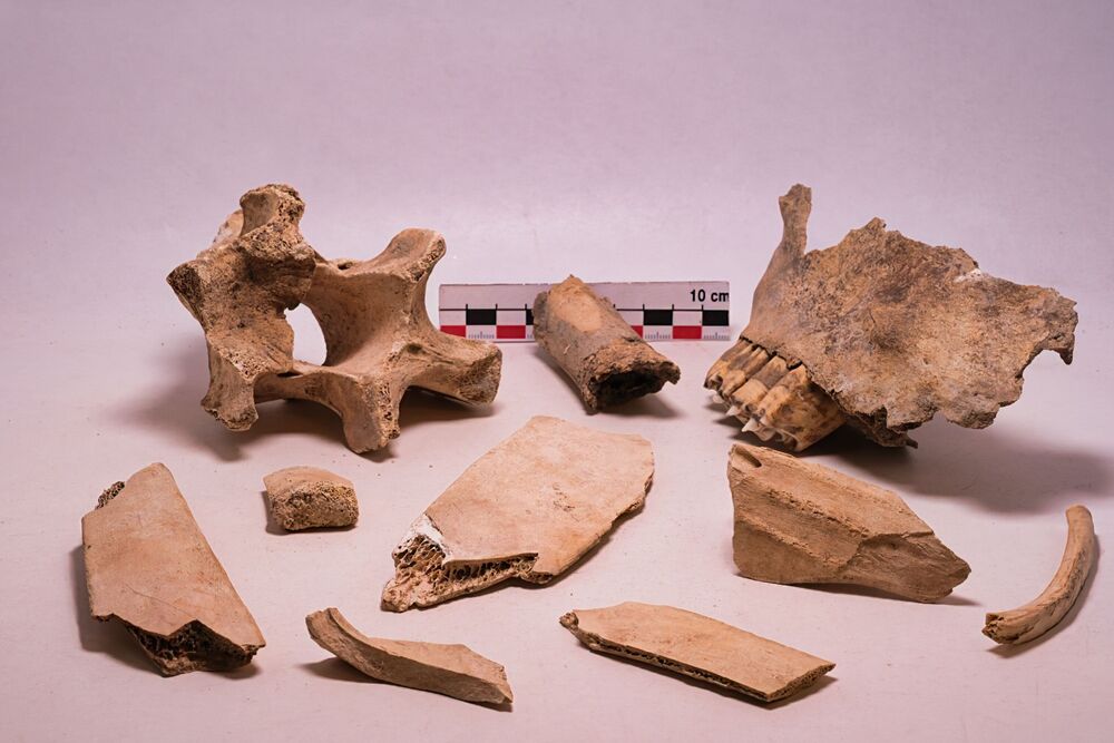 Fragmenten, been/aardewerk/baksteen/ijzer/leisteen/vis,
