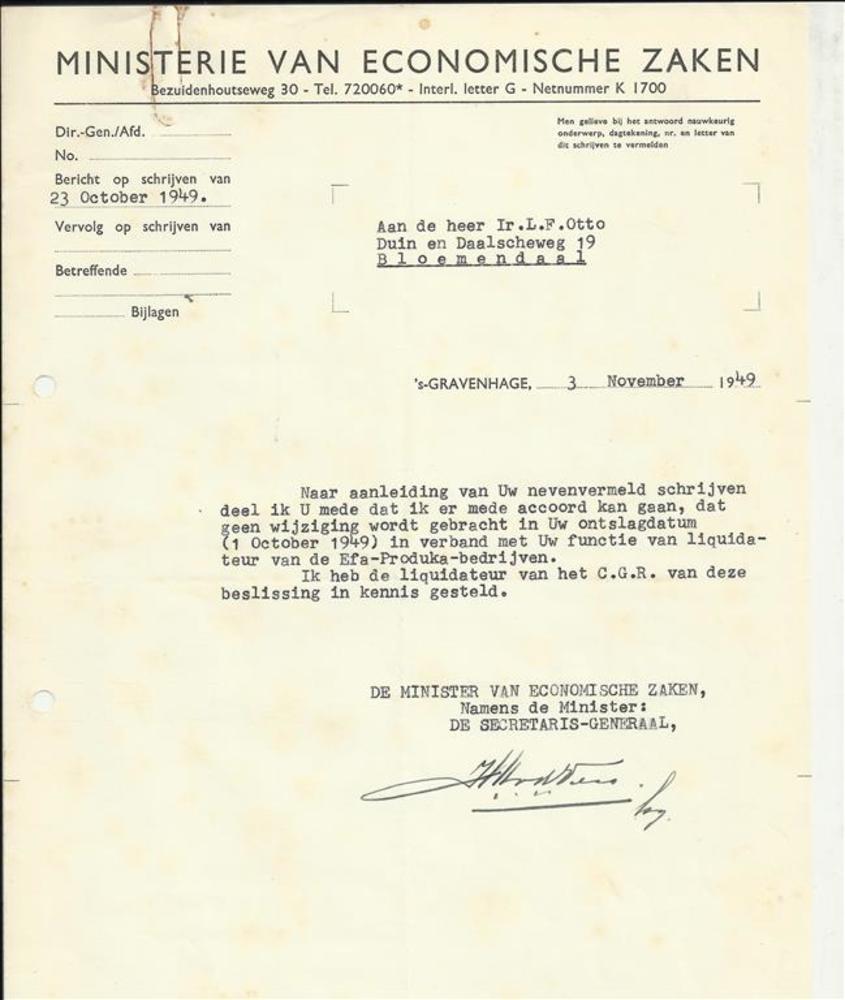 brief van het Ministerie van Economische zaken aan -...