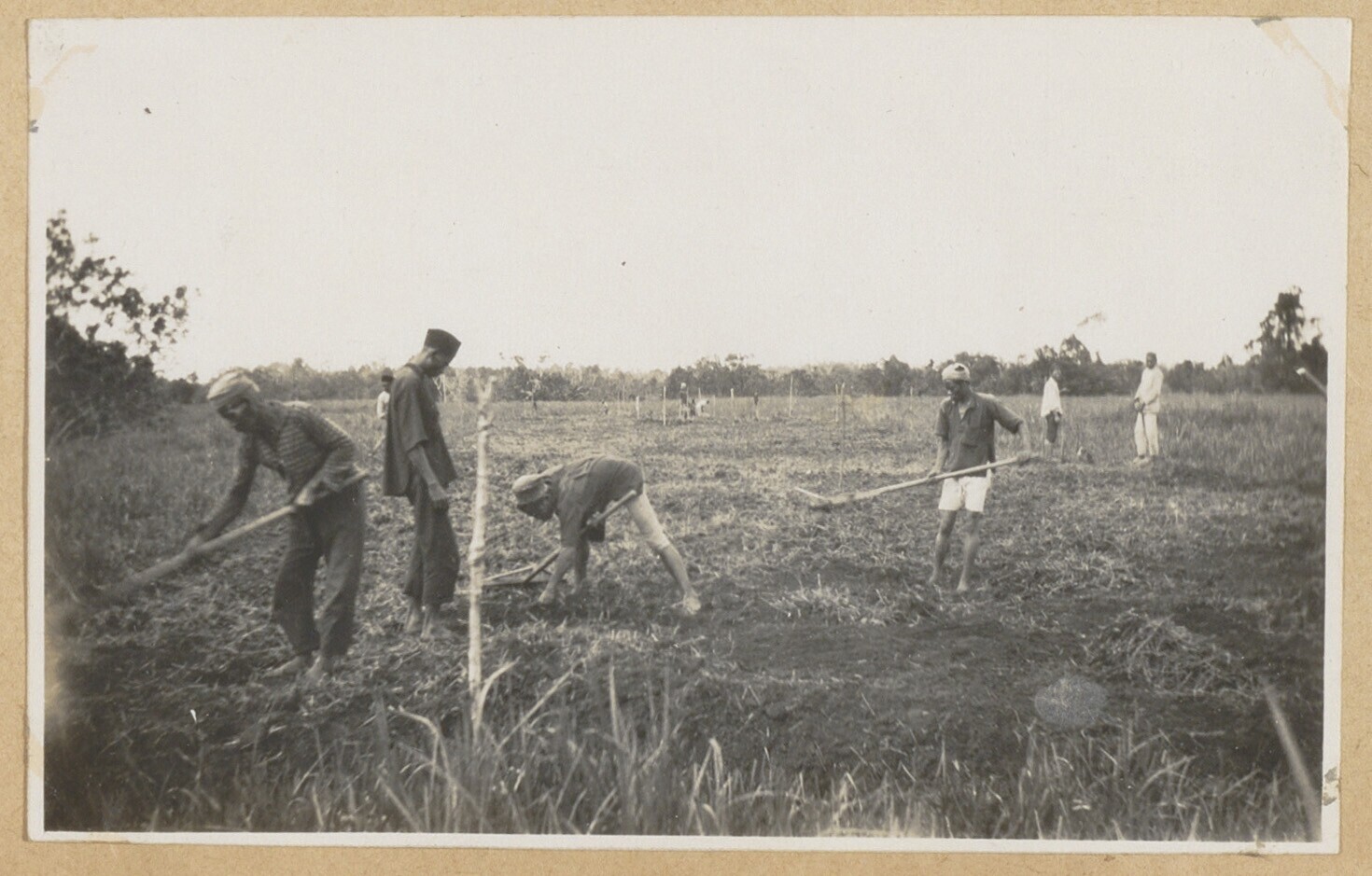 Groep Sumatranen bezig met het harken van een akker ...