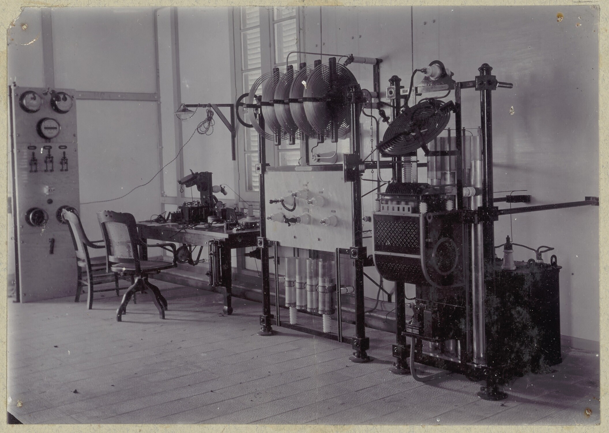 De radiokamer van het radiostation van Noesaniwi op ...