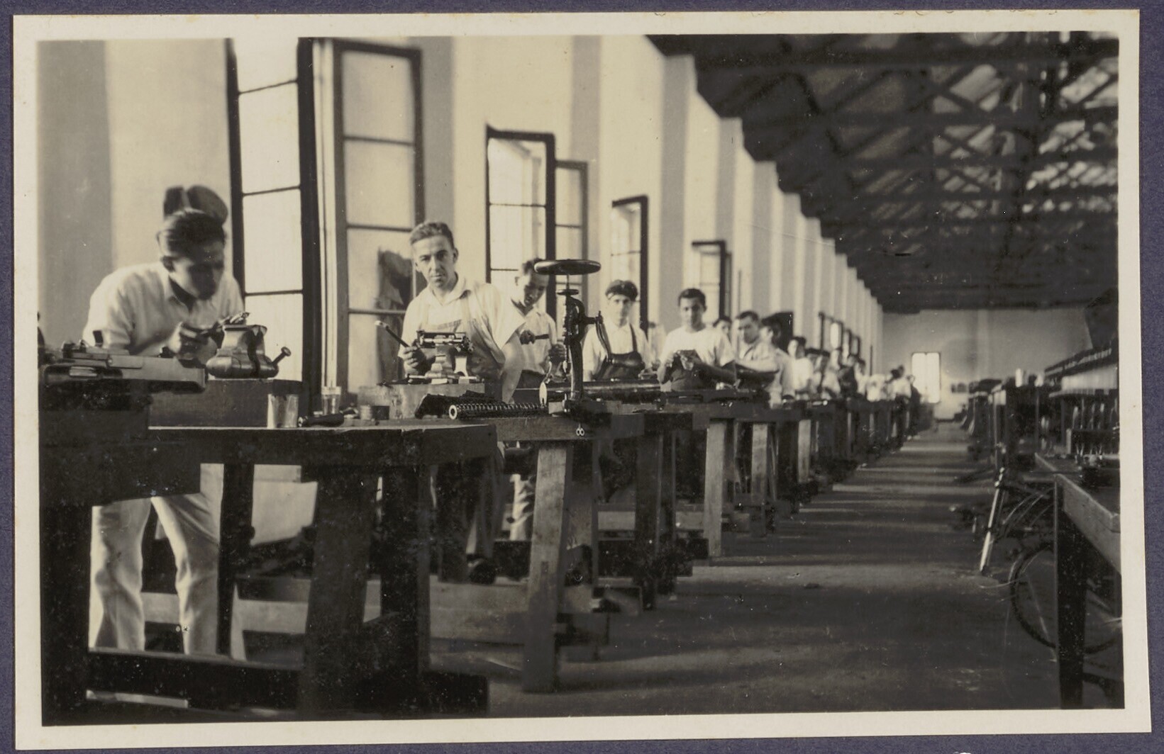 Interieur van werkplaats van wapenfabriek, afdeling ...