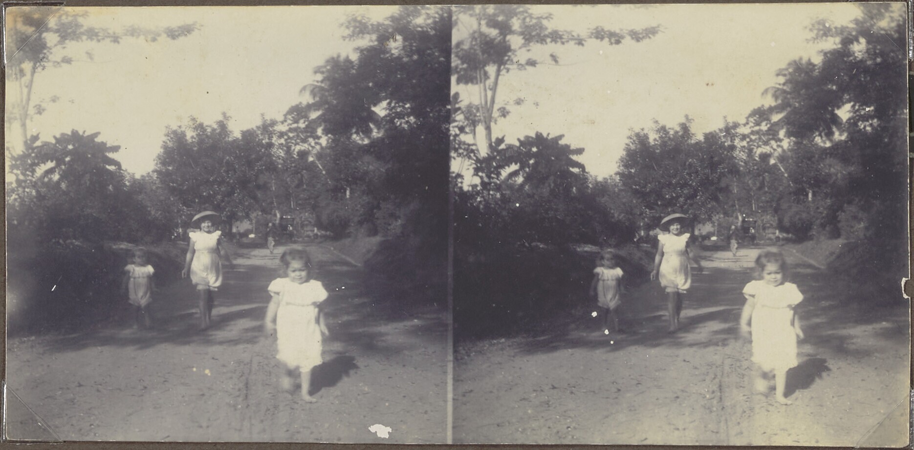 Stereofoto van Europese kinderen in de straat