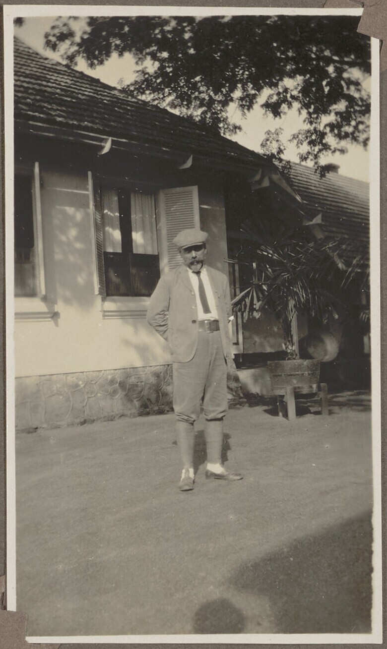 Portret van een man in de tuin van het gesticht
