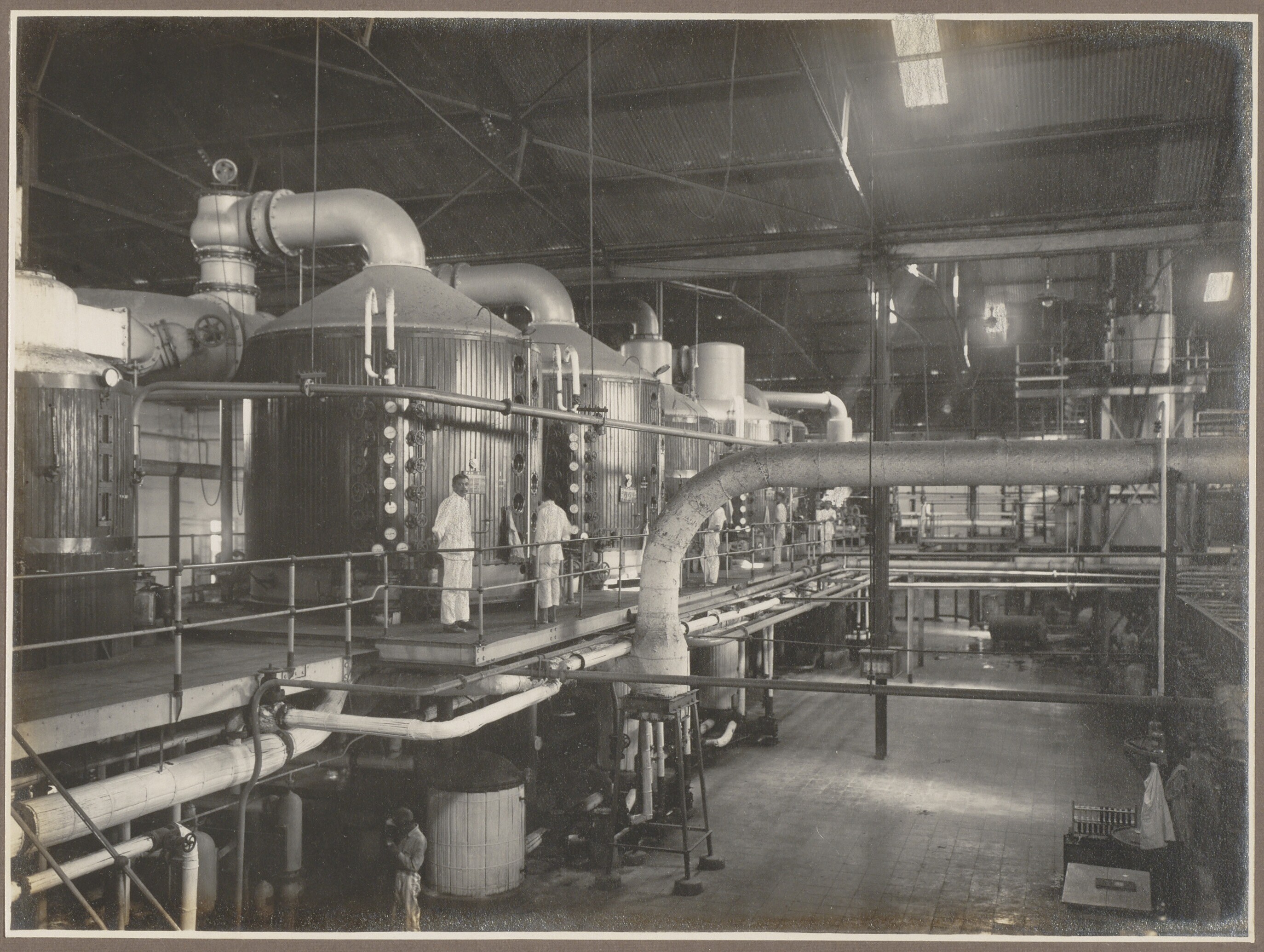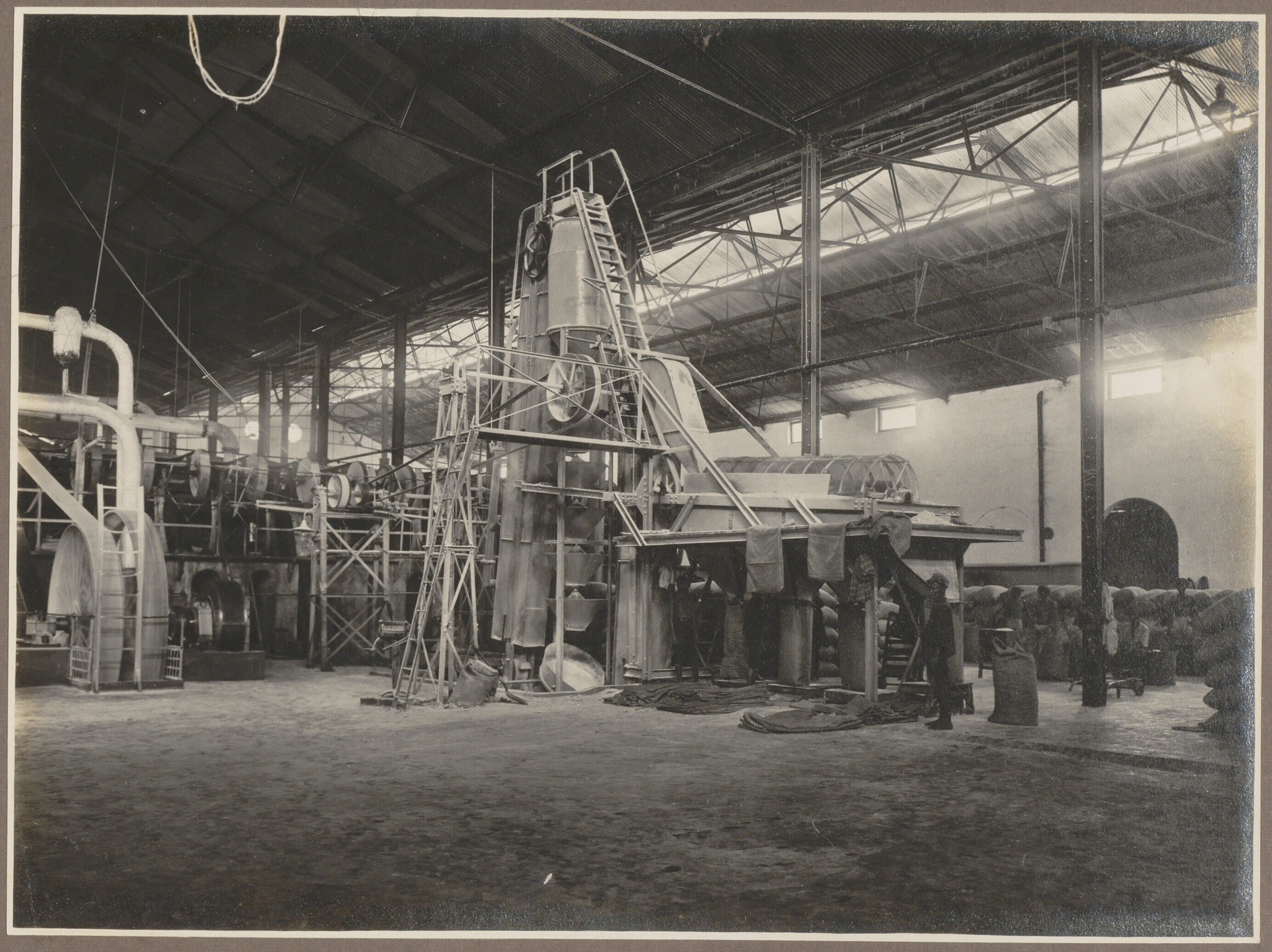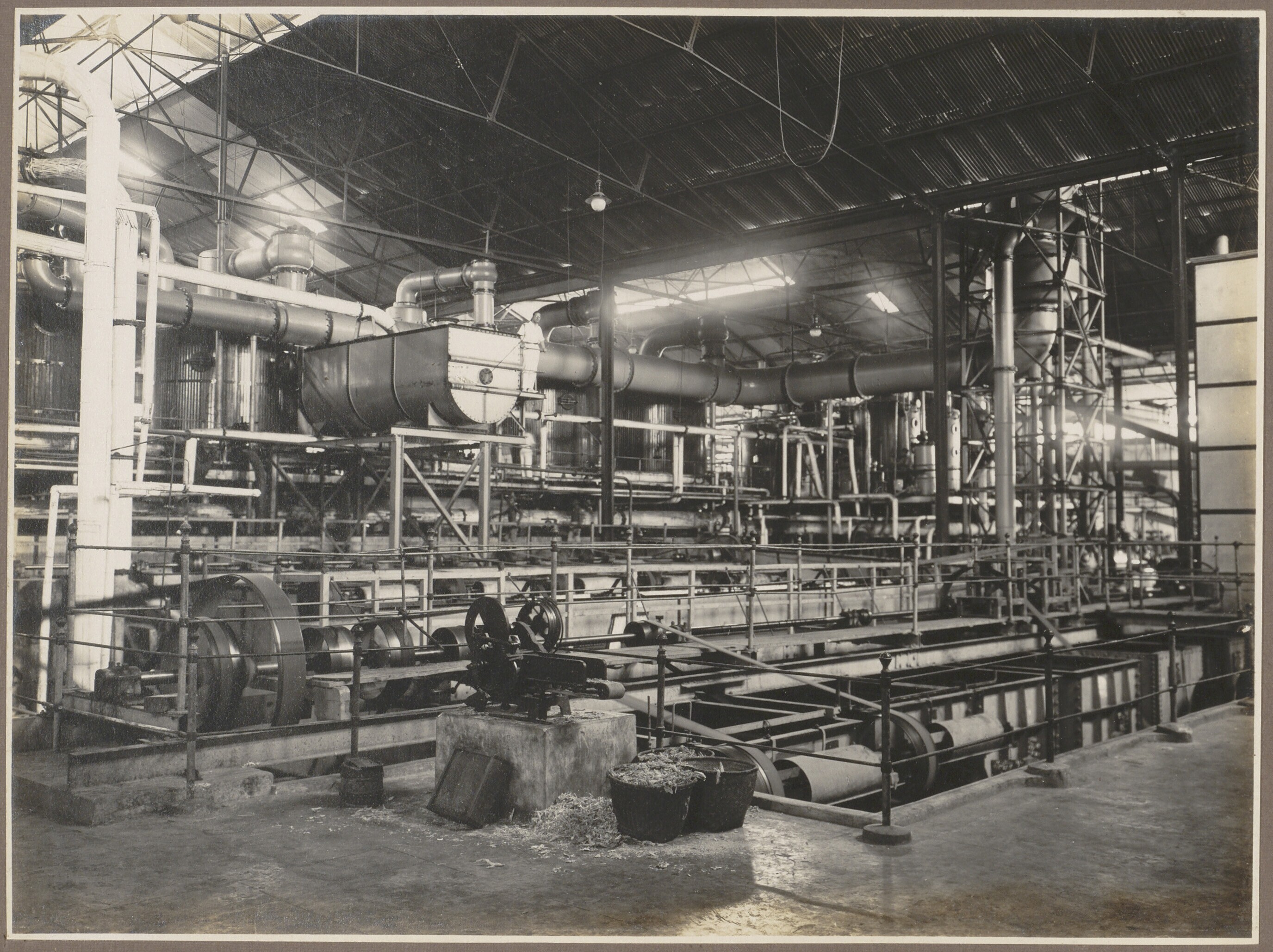 Binnenkant van een suikerfabriek bij Djatibarang en ...